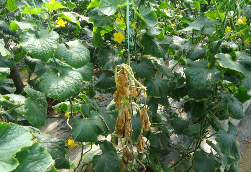 3月16日,經(jīng)當(dāng)?shù)氐牧闶鄣昀习宓耐扑]和介紹,了解到該農(nóng)戶的黃瓜有大量死棵爛苗的現(xiàn)象,遂決定做此次試驗,一來驗證公司產(chǎn)品微根露的效果,二來效果出來后,說服零售店進(jìn)貨。