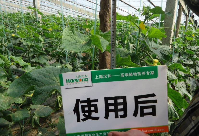 開花和坐果:使用區(qū)和對照區(qū)分別數(shù)10棵黃瓜的坐果數(shù),使用的10棵坐果61個,對照區(qū)10棵坐果46個,使用的區(qū)域坐果量用肉眼明顯的能觀察到比較多