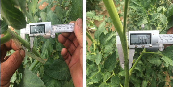 2、莖稈粗度: 調查日期4月23日,分別在試驗區和對照區隨機抽樣,測量相同節間中部直徑。