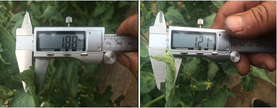 3、葉片厚度:調查日期4月23日,分別在試驗區和對照區隨機抽樣,測量相同葉位葉片的厚度。